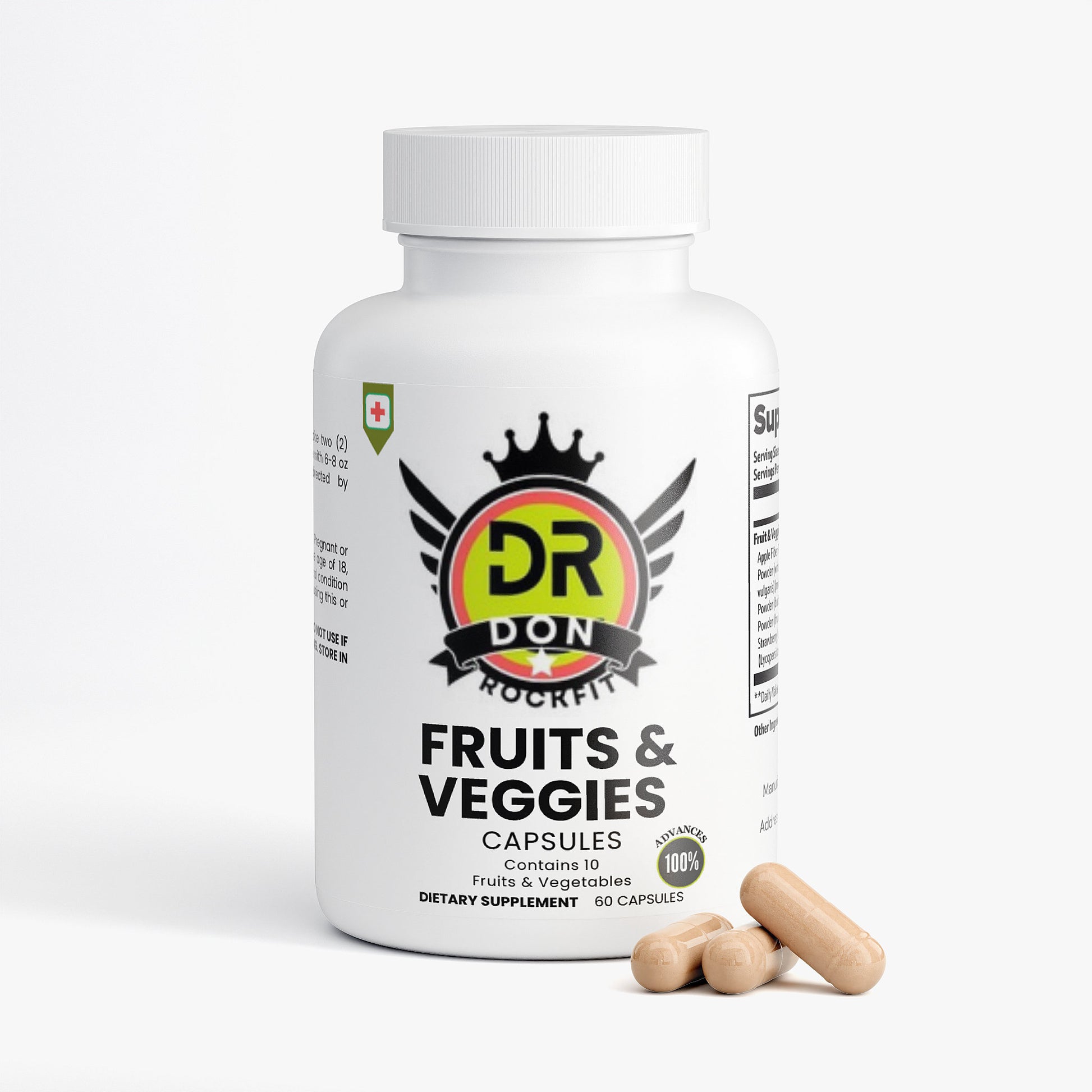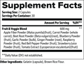 Ingredients: Apple Fiber Powder (Malus pumila) (fruit), Carrot Powder (whole carrot), Beet Root Powder (Beta vulgaris) (root), Blueberry Powder (fruit), Garlic Powder (bulb), Ginger Powder (root), Raspberry Powder (fruit), Red Bell Pepper Powder (fruit), Strawberry Juice Powder (fruit), Tomato Extract (Lycopersicon esculentum) (fruit), Gelatin (capsule), Brown Rice Flour.